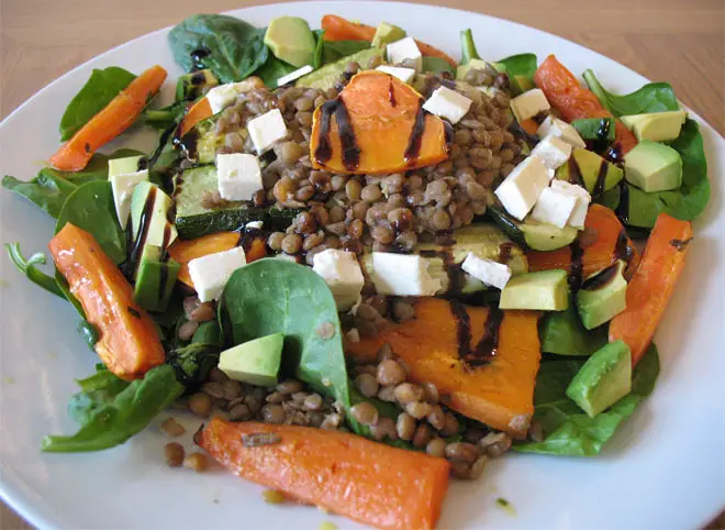 Brown lentil salad with roasted vegetables