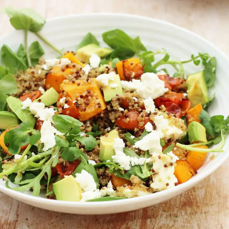 Roasted Squash, Quinoa, Avocado and Feta Salad
